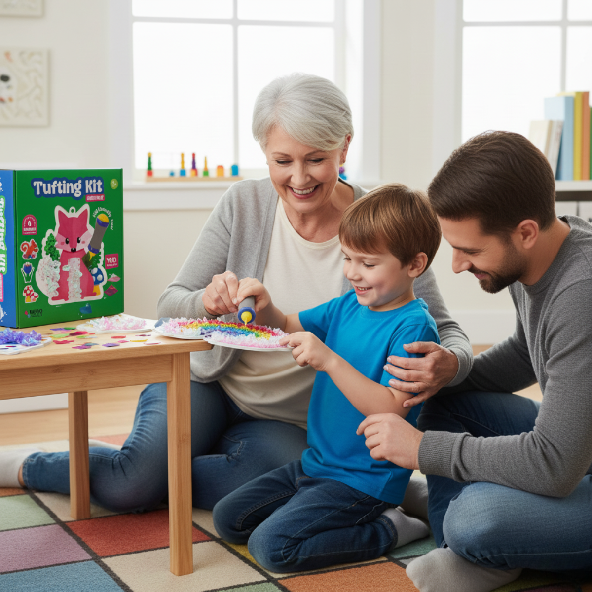 Tufting Kit е комплект за създаване на 3D картини, при който децата с помощта на специален инструмент вкарват цветни елементи в изображенията – без лепило, без ножици и без бъркотия. 🧵🖌️